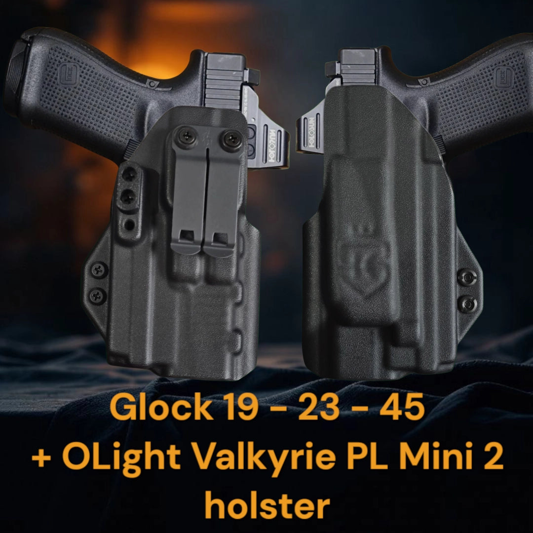 Glock 19 - 23 - 45 + OLight Valkyrie PL Mini 2 Lightbearing Holster – StealthKydex Próta AIWB/IWB Kydex | Fit to Conceal – Built to Perform